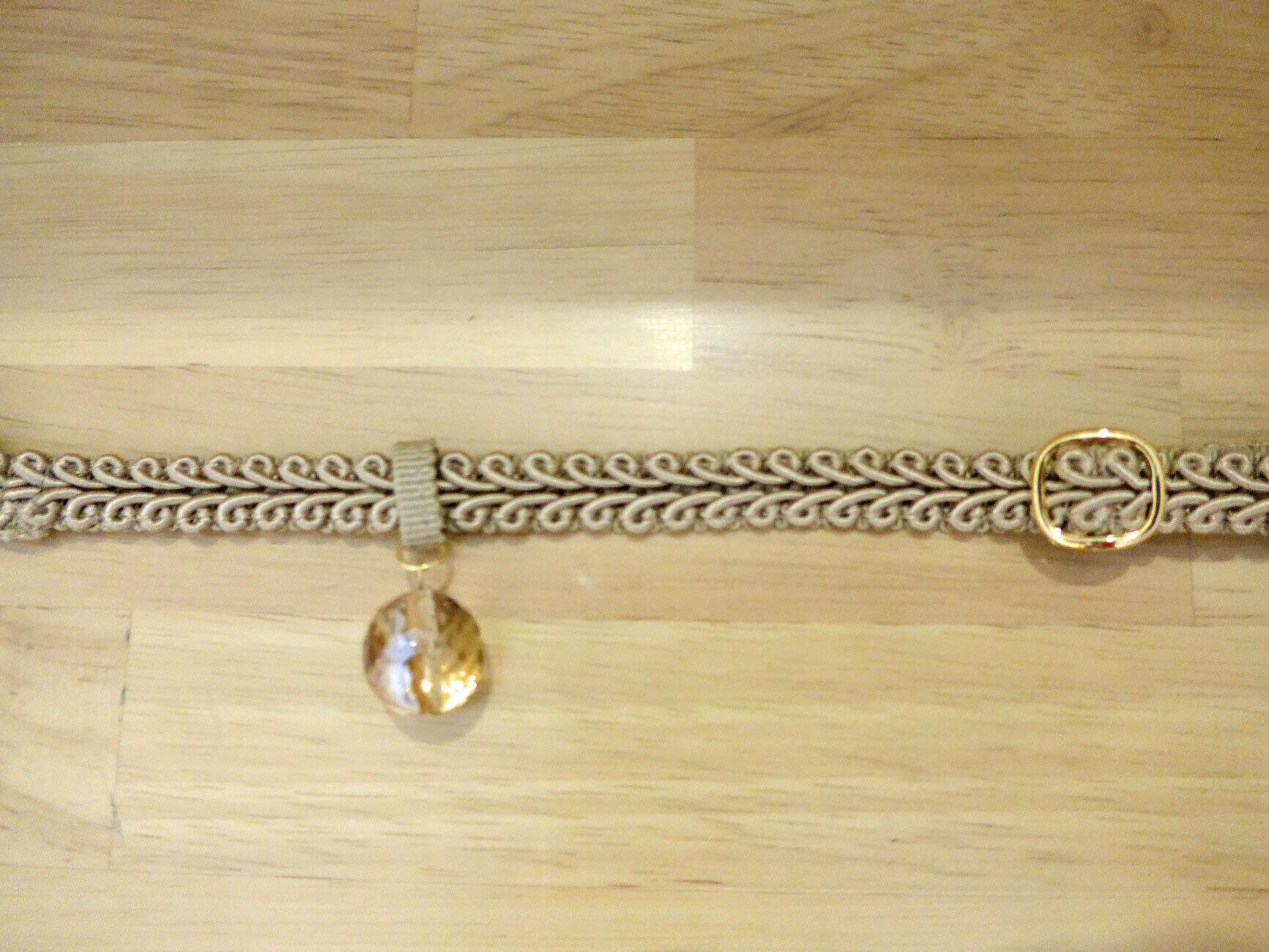 右側の首輪のビーズは、ドイツのアクリルビーズです。べっこう飴のような色合いで、画像ですとちょっと分かりにくいのですが、中がこげ茶のマーブル模様になっています。