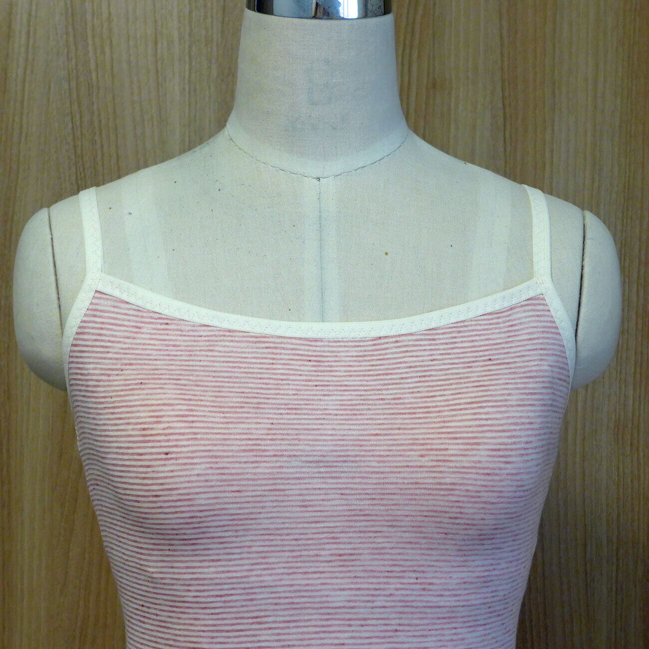 天竺木綿100%のシングルジャージー編みなので、ポリウレタンが入っていなくても、伸縮性があります。ストレッチ性を求めたポリウレタンの入っている生地は、夏場はちょっともさっとして、あまり心地よくないですよね。